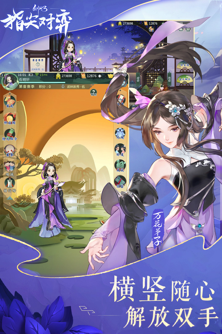 剑网3指尖对弈是一款基于经典武侠IP剑网3打造的自走棋手游,把大家熟悉的江湖名侠变成棋子,在棋盘上来一场策略对决。游戏融合了卡牌闯关和自走棋对战玩法,既能多人对战拼操作,也能单人闯关轻松玩,横竖屏随便切换,站着躺着都能玩,特别适合想随时来一局的玩家。画面延续了剑网3系列的精致国风,天策、少林、万花等门派侠客全都有,连纯阳于睿、阴阳师源明雅这些高人气角色也等着你来收集。