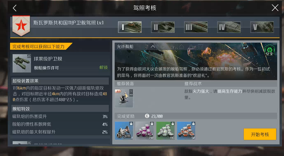 考试关卡有较高的战术需求,系统通常会给出推荐装备和战术,但你可以根据自己的理解进行装配。考前一定要仔细检查舰船配置是否满足关卡要求,根据敌人特点来搭配武器和装置。面对需要远距离作战的关卡,可以配备狙击武器和护盾增强器;而近身缠斗的关卡,就可能需要安装护盾修复器和近程火炮来保证生存与输出。火力一定要足够,防御也不能太差,不然很难通过。