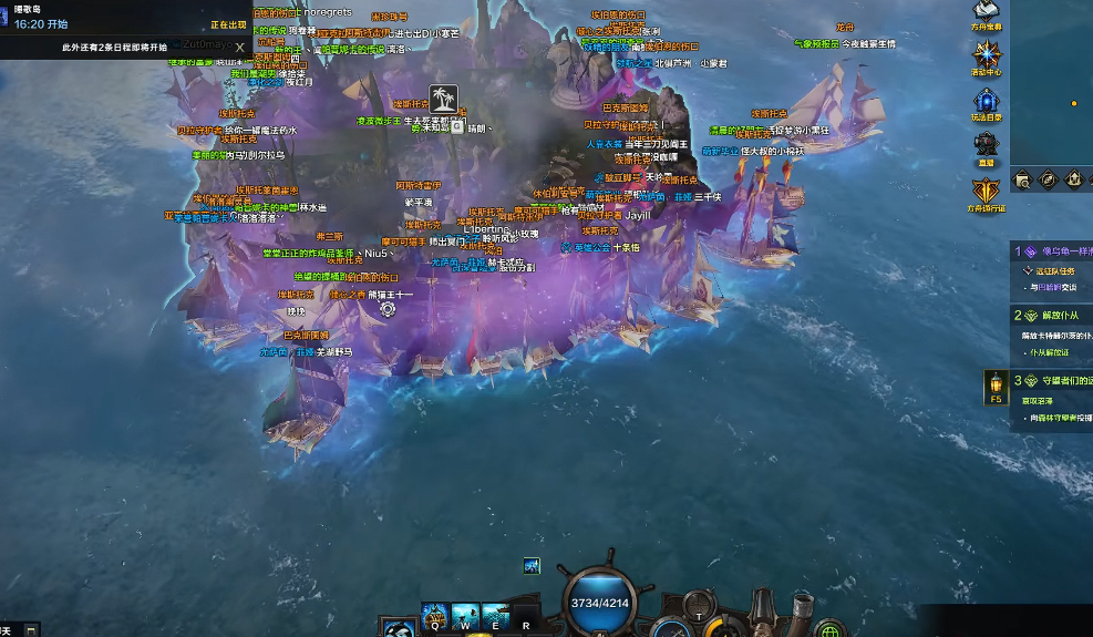 成功登岛之后,咱们就算是正式进副本了。岛上的核心玩法其实是一场与时间赛跑的集体寻路和打BOSS活动。整个岛屿的地图设计有点像一座大型迷宫,道路经常会被堵住或者出现岔路口。有些通道的入口藏在需要打破的障碍物后面,或者需要你把附近刷新的几波小怪清理干净才会打开。所以最重要的诀窍就是跟着大部队抱团行动,大家保持沟通,一起清怪、一起开路。路线需要大家协作探索,沿着道路的一侧,比如右侧,持续向岛屿的深处也就是右下方向推进,最终就能找到守关的BOSS房间。