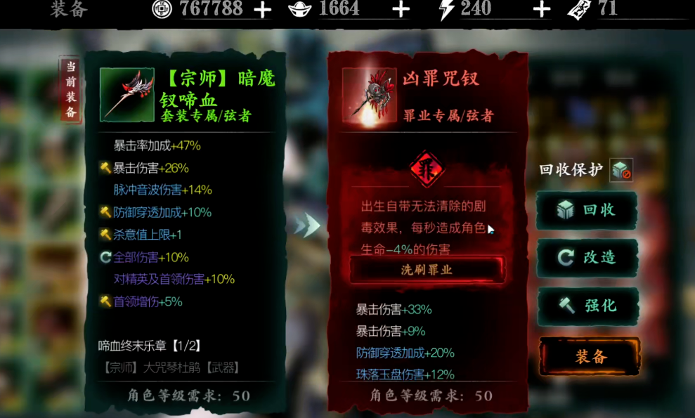 罪业装备的属性在净化时随机范围很大,上下限差距悬殊,所以你得有点耐心,多刷一些罪业装备存货。看到那种初始词条就特别优秀的,比如直接加高额暴击率、伤害加成、攻击力这类简单粗暴提升输出的,再考虑动用你的净化液把它洗出来瞧瞧具体数值。而对于洗罪符的使用就更要精打细算了,这属于消耗品,用一次少一次,最好把它留给那些你已经确定要长期使用的毕业装核心部件,或者是你当前流派最依赖的输出装备,可别随便浪费在很快就会被淘汰的过渡装备上。