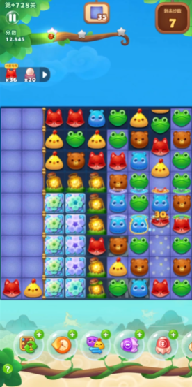 在有限的步数内消除棋盘上所有的冰块冰块不仅数量多,而且许多还被多层覆盖。障碍物方面,你需要同时应对会扩散的毒液、不断吐出毒液的章鱼,以及限制动物移动方向的冰墙。开局后仔细观察,会发现左下角靠近章鱼的区域以及右上角的冰块通常是消除的难点,因为操作空间受限,需要优先制定策略。