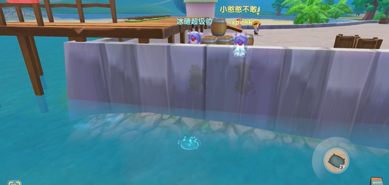 浆果丛林和开心农场中间的那块区域到了那里找到神秘湖码头,就可以开始你的垂钓之旅啦。好消息是,粉海豚的刷新时间比较友好,它是全天都会出现的,也就是说,无论白天黑夜,你都有可能遇到它,这给喜欢在不同时间上线的小摩尔提供了很大的方便。