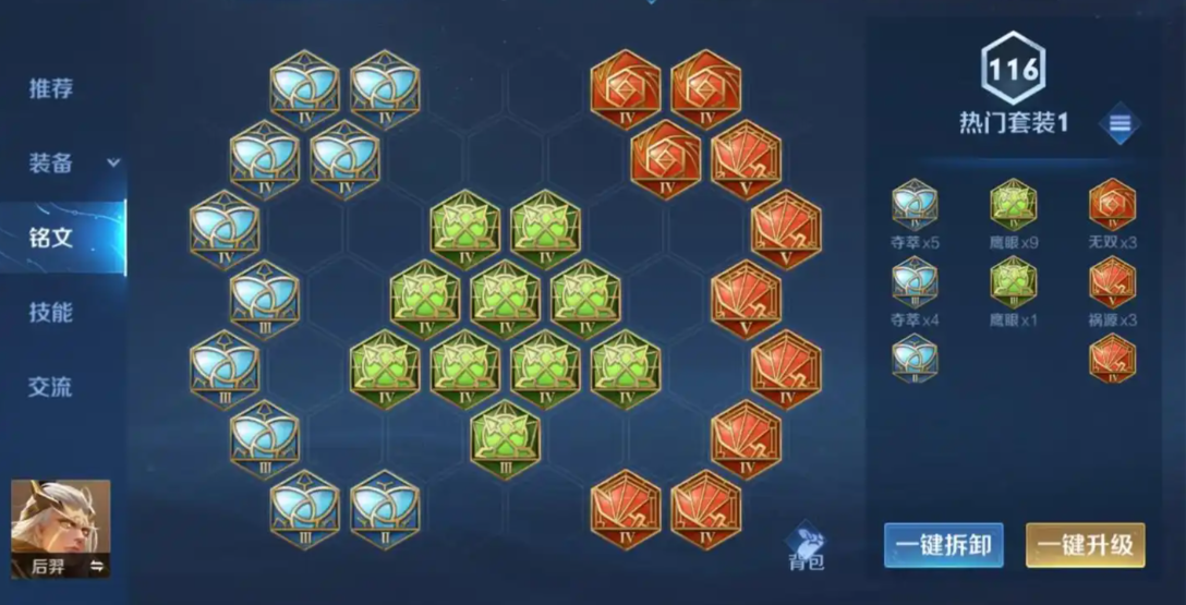 铭文搭配蓝色铭文通常选择夺萃,直接提供物理吸血,能够在游戏初期就让后羿拥有可观的续航能力,减少回城频率以保证发育。绿色铭文固定选择鹰眼,提供必要的物理攻击和物理穿透,确保普攻和技能能够打出有效伤害。红色铭文的选择则存在一些流派,主流选择是祸源以增加暴击率,配合装备让暴击更快成型;也有搭配部分红月或无双的方案,进一步提升攻速或暴击效果。一套典型的铭文组合如夺萃、鹰眼加祸源,能让后羿在开局就具备战斗与回复的基础,其属性与中后期出装形成完美互补。