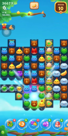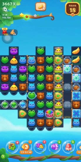 本关的步数管理是另一个需要密切关注的重点尽管初始步数只有三步,但关卡下方设置了可以增加步数的泡泡元素,这意味着你的每一步操作都应追求消除效果的最大化,尽量避免无效或低效的移动。优先消除棋盘底部的障碍物是贯穿始终的策略,因为这能促使上方的小动物掉落,常常能自动形成新的特效组合,从而实现以消除养消除的良性循环。