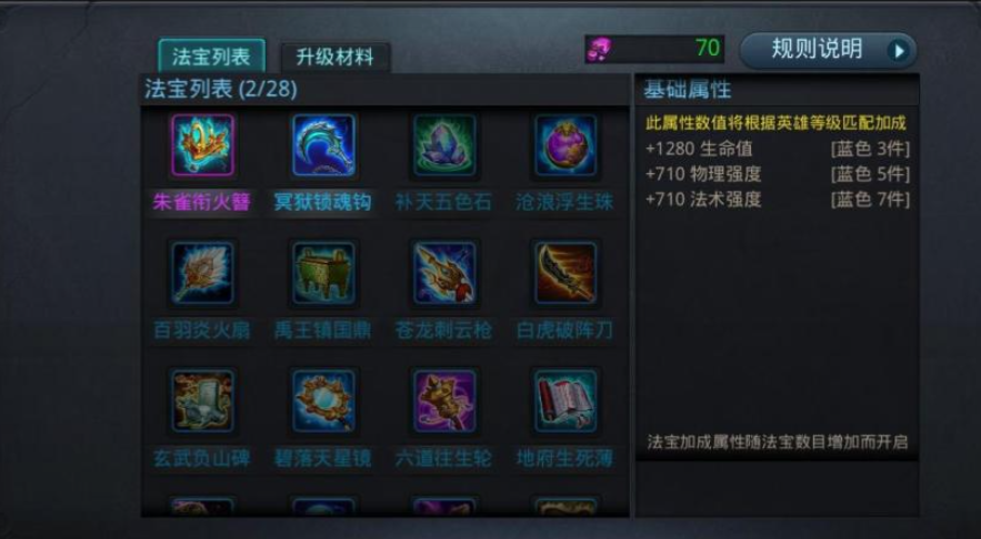 法宝的获取最直接方式是参与游戏内特定活动,例秋节限时玩法可能奖励减防法宝如朱雀衔火簪。日常可通过混沌残片兑换基础法宝,混沌残片主要从英雄试炼、须弥幻境和帮派领地玩法中掉落,攒够一定数量即可换取蓝色品质法宝。进阶紫色法宝需消耗混沌残片和元宝,而金色法宝作为高阶选择,通常依赖精魄合成或凌云壁兑换宝箱概率获取。紫色法宝由蓝色进阶而来,消耗200混沌残片加元宝可提升品级,进一步增强属性加成。