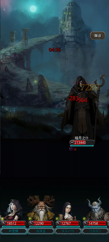 在与暗月神交战时,玩家需要为其独特的战斗机制做好充分准备。她总共有四个依次变换的战斗阶段,且整个战斗过程不可退出更换阵容或调整装备。这要求玩家在开战前就必须配置好一套能够应对多阶段挑战的阵容,并在战斗中进行大量的手动操作以应对不同阶段的技能。其战斗难度较高,不同阶段分别有回复生命、施加高额伤害并附带暗月诅咒或护甲衰减等强效减益的技能,其中一个阶段还会间歇性释放强力的群体魔法伤害。