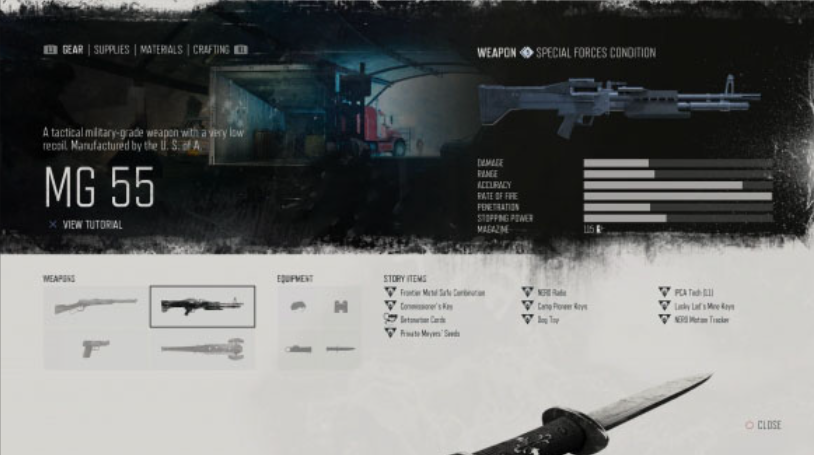BND-150是二周目通关后的奖励武器,属于SS级,拥有消音爆炸弹,可以远距离清理大部分暴走潮,战斗能力完美,但弹药获取较为困难。MG55作为暴走潮进度达到60%的奖励,是一款万能型机关枪,载弹量接近600发,射程远、稳定性高,连射时后坐力小,有效射程比突击步枪还远。芝加哥打字机是一周目三大神器之首,在巫师岛营地购买,拥有300多发超大容量载弹量,射速和杀伤力最高,适合打boss、暴走潮和人类敌人。BFG.50是对人战最强武器,基本可以做到一击必杀,但载弹量较少,泛用性能不够全面。IDFPup突击步枪以其高度精准和稳定性著称,后坐力小,连续射击不易偏离目标,装弹量在升级后更为充足,适应各种战斗环境。