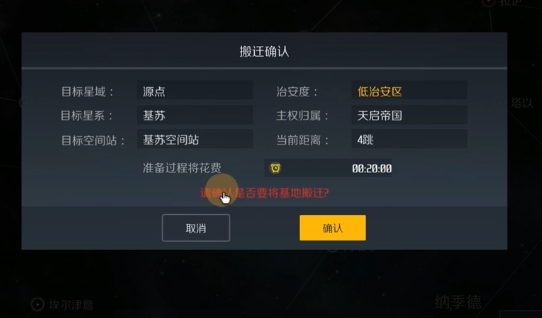 执行基地搬迁需要一定的准备时间,其长短取决于目标地与当前位置的距离,并且可以使用铱金进行加速。在准备期间,你仍然可以在当前基地所在的空间站内正常活动,并查看搬迁的剩余时间。当准备完成后,系统会提示你进行确认,一旦确认,你和你的个人基地以及所有物资将被瞬间传送至新的目的地空间站。