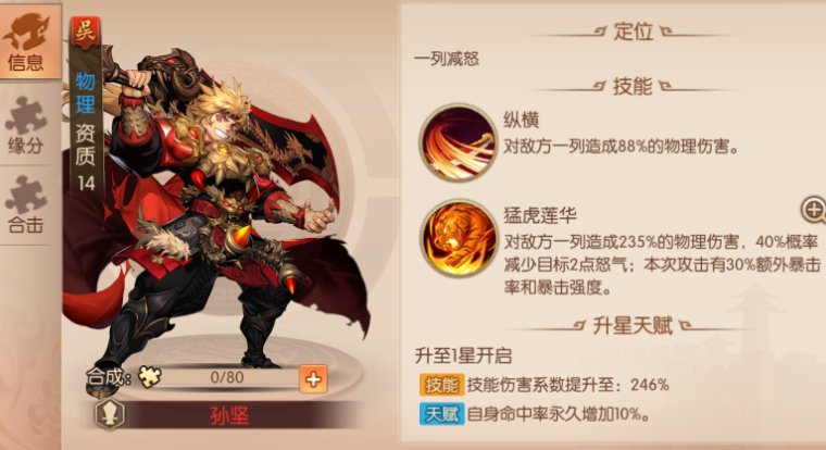 资源的集中培养是强化阵容强度的根本途径,必须优先保证核心武将的成长。资源切忌平均分配,应全力倾斜给主C武将,例如优先培养孙坚和吕蒙,他们的爆发力决定了战斗节奏。武将碎片的获取有明确途径,传记挑战中的孙坚碎片、军团商店的孙权碎片是必换项,竞技商店的太史慈碎片可根据需求兑换。装备与战魂的搭配需围绕核心武将展开,孙坚适合增加暴击与攻击的装备,吕蒙侧重强化攻击与收割能力,大乔则需注重速度与防御以保证治疗技能优先释放。