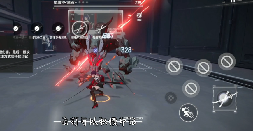 技能操作上,真红输出主要依赖大招绯·散华,它需要消耗印记,因此战斗中要快速补充印记值,连招时可以平A起手存满一格印记后接一技能,然后A四下使用闪避保存普攻段数,接着释放两段大招,如果刻印给了印记也一并用完,之后接A和二技能恢复印记继续连斩,一技能好了还能接一闪再继续连斩,注意闪避可以取消技能后摇避免挨打,三技能一段和二三段是分开计时的,释放完一段后可以补印记再继续释放,将输出最大化。