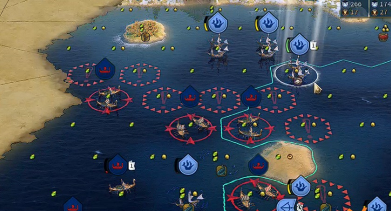海图征服面临独特的地形和资源挑战,群岛地图的陆地单元格通常较为紧缺,且容易遇到资源稀少的区域,这导致玩家难以像在陆地地图那样通过大规模扩张来提升数据;蛮族在海图中尤为烦人,因为发展强大海军需要投入较多精力,蛮族的船只可能频繁骚扰,破坏改良设施或抢劫商路,影响早期发展节奏;海图在远古时期往往难以进入黄金时代,玩家可能需要通过清除蛮族来获取时代分,但具体策略需根据所选文明的特性进行调整。