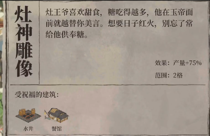 赚钱最快的方法主要集中在高效利用特定生产建筑、合理规划雕像加成布局、并结合人物与珍宝的增益效果。最核心的来钱途径是建造大量水井并使其获得灶神雕像的祝福,因为水井是所有建筑中效益最高的,特别是当它建在餐馆旁获得祝福时,每3分钟两个居民即可净赚210铜钱,通过密集建造并频繁操作可以快速积累大量财富。