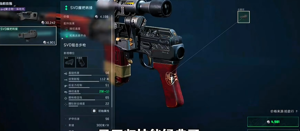 改装SVD首先要明确其基础属性与改装方向。这把射手步枪拥有56的基础伤害,命中头部可造成致命打击,使用的7.62x54R子弹也较为经济。但其初始短板在于操控速度较低,影响了开镜与跟枪的灵活性。改装的首要目标便是通过配件组合,显著提升枪械的操控速度与据枪稳定性,让瞄准与射击过程更加跟手。
