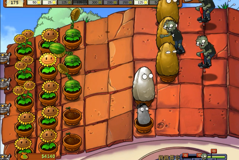 建议在场地靠后的位置,例如倒数第二列,种植高坚果来构筑一道无法被跳跃的坚固防线。需要在阵地中段或后排提前种下磁力菇以吸走跳跳僵尸的弹跳杆,记得为磁力菇套上南瓜头来保护它免受伤害。攻击植物的选择上,西瓜投手或冰西瓜投手这类具有范围伤害的植物是优秀选择,应将它们部署在高坚果或磁力菇的后方进行输出。开局时可以在场地最左侧预留一个空位给窝瓜,这样能够缩短其冷却时间,用于应急处理突破防线的单个僵尸。