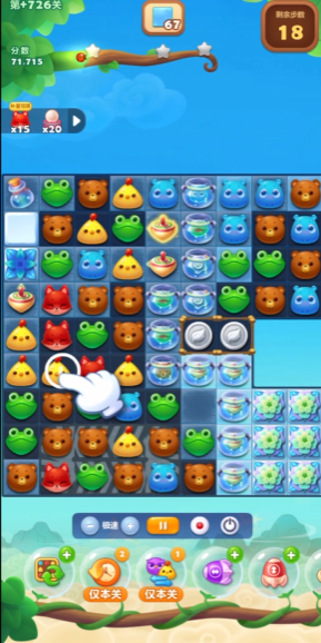 在具体操作过程中需要注意消除顺序的优化。开局往往从一侧或上方入手,以触发连锁反应并释放更多小动物。制造特效时需兼顾当前消除对后续动物布局的影响,选择能让动物流动更大、创造更多可能性的消除路线。若步数紧张,在开局阶段可考虑使用增加步数的道具作为保障。通关的最终阶段通常集中处理最难清除的剩余障碍,此时更应珍惜每一步,力求通过最后的特效组合完成目标。