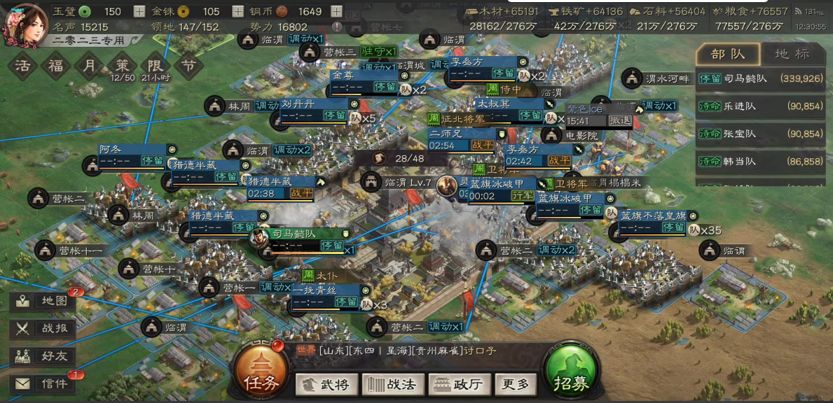 若需精确定位主城坐标,可点击势力值右侧的感叹号打开领地详情面板,其中明确标注主城坐标位置,确认后即可实现地图跳转。该方法特别适合在查看其他玩家坐标或分城位置后迷失方向的场景。主城与分城具有独立征兵队列,合理利用分城调动功能可同步补充两支主力部队的预备兵,但分城位置选择需结合同盟战略布局,通常建议优先部署在资源州以提升作战效率。
