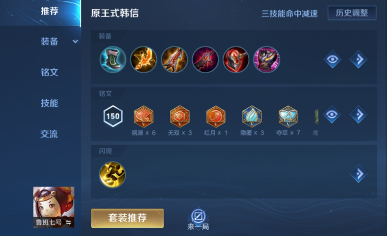 鲁班大师作为辅助英雄,铭文建议带宿命增加坦度,虚空缩减技能冷却,调和提升回复能力。出装思路以团队增益为主,极影或奔狼图腾配合队友开团,抵抗之靴减少控制时间,极寒风暴提供冷却缩减和物理抗性,魔女斗篷应对法师威胁,霸者重装减少回城频率。技能加点主一技能击退控制,二技能连线辅助可根据局势灵活调整。