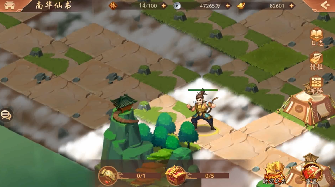地图中存在多处隐藏障碍,需按顺序解除。击败初始位置的山中异士后,沿边缘向左上方移动,途中击败所有守军并保存时空之力。与南华老仙对话可解除中部障碍,随后在森林区域找到仙书。若中途路线错误导致卡关,需重新挑战。