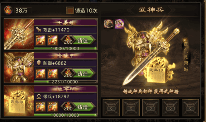 兵器升级顺序直接影响战斗力的提升效率。优先升级攻击型兵器如剑、枪、锤等能显著提升输出能力,而防御型兵器如弓、钺可稍后处理。每级兵器升级可增加攻击+5、防御+3、兵数+8的属性,因此攻击型兵器的收益更为直观。攻击型兵器优先升级的原因在于其能更快解决战斗,减少兵力损耗,尤其在前期资源有限时,攻击收益更高。