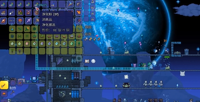 不过前期可能还没办法弄到环境改造枪,这时候净化粉就是咱们的好帮手啦。找树妖小姐姐就能买到,75铜币一瓶相当实惠。虽然范围比较小需要手动一点点撒,但对于局部净化来说完全够用。使用时要注意附近必须有物块支撑才能生效,而且像多刺灌木这种特殊地形还得先手动清理掉。建议配合挖隔离带一起使用,防止净化过的地方又被污染。