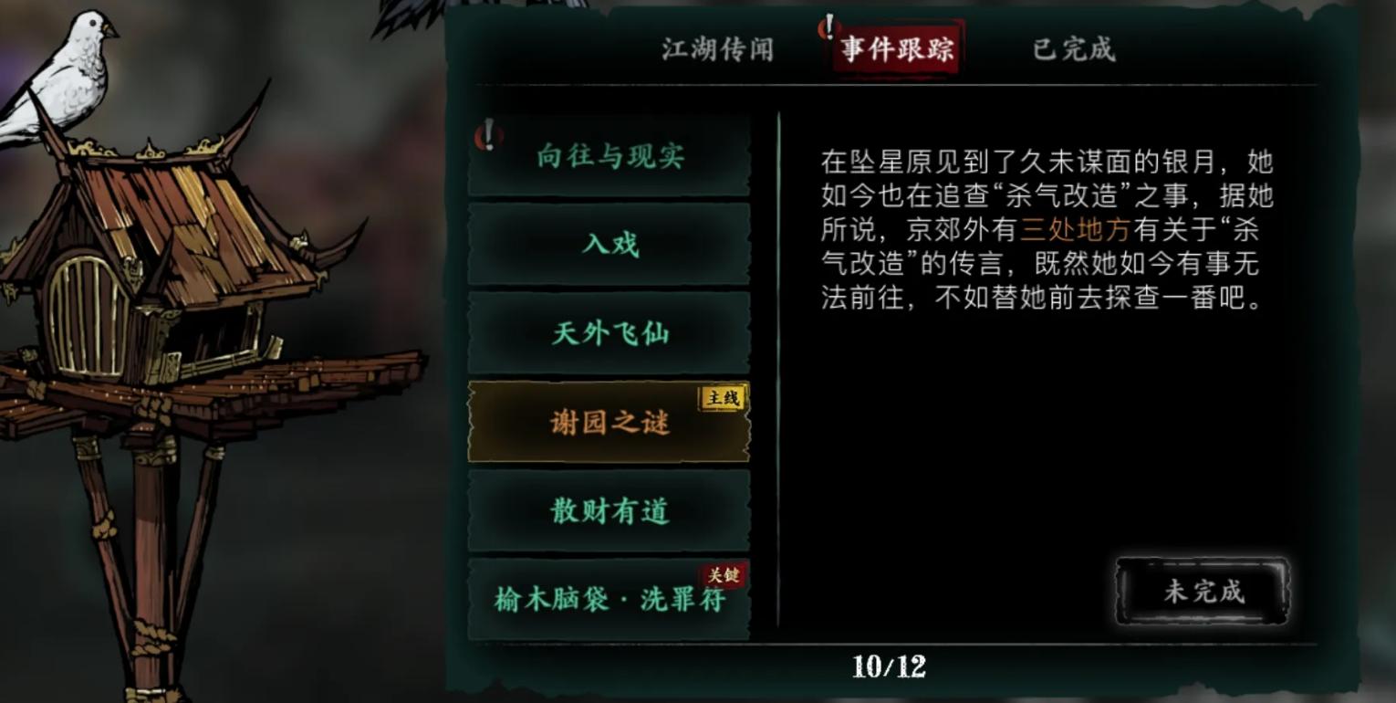 完成任务后不仅能拿到经验、残页和元宝奖励,最重要的是解锁小厮这个新角色。他是组织里的机关师,武器超酷炫,能变形各种械具攻击。这个任务主打剧情体验,战斗部分几乎没有,所以放轻松跟着提示走就行。如果之前没做过前置支线,可能需要先清掉地图下方三个地点的任务才能进谢园。