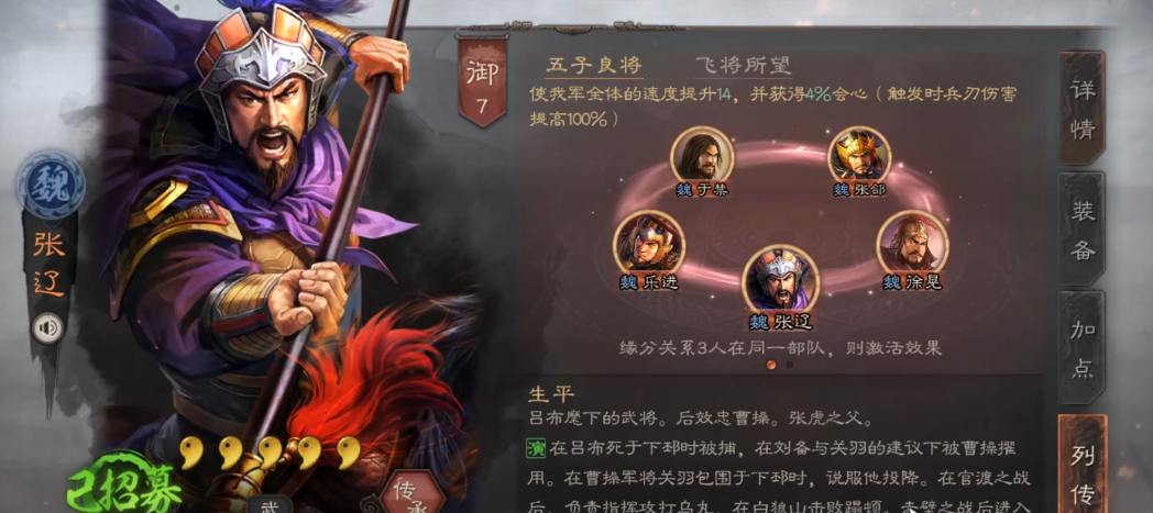 加点方面,武力和速度是突击武将的生命线。武力直接提升伤害,而速度决定谁先出手——先手意味着可能秒掉对方核心或挂上关键减益。比如张辽全速加点,能在敌人行动前打出破防效果。战法搭配讲究爆发+功能组合:核心输出位像张辽首选暴戾无仁鬼神霆威等高伤战法;副输出如夏侯渊可带百骑劫营一骑当千补充群攻;辅助位则配弯弓饮羽降统率,或折冲御侮保主将。注意战法顺序,先降防后输出的组合收益更高。
