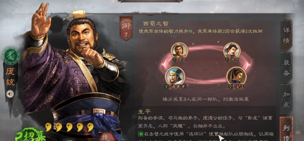 想让他俩搭档干活,路子主要有两条。一条是把庞统塞进经典的桃园队,让张飞、关羽这对老搭档带着他。这么组能蹭到桃园结义的团队光环,打到后面几回合能帮忙清掉身上的麻烦状态,队伍更耐揍些。庞统在这里的角色更像是军师,给张飞、关羽这两位大哥打辅助、加点料,同时瞅准机会甩出他的连环火烧一片。另一条路是走谋士抱团路线,比如让庞统和周瑜、徐盛这样的聪明人组队。这时候速度快点的张飞就得冲在前头,先手给敌人挂上各种负面状态,好触发庞统和周瑜那些需要debuff才能爆发的强力技能,徐盛则专心保护大家别被集火干掉。这条路线法术轰炸更猛,但得小心别被对面快速切掉了脆皮。