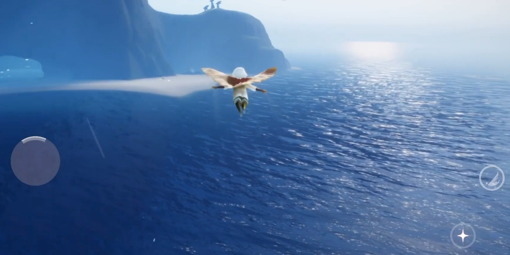 主岛右侧瀑布附近周期性喷发的泉眼可提供升力气流,借助气流升空后需精确调整朝向以抵达高层浮岛。完成编钟任务或收集四个记忆碎片可解锁遥鲲骑乘功能,该生物会沿固定路径攀升至最高点岛屿。能量管理尤为关键,建议携带烟花棒等充能道具,或与其他玩家牵手补充飞行消耗。