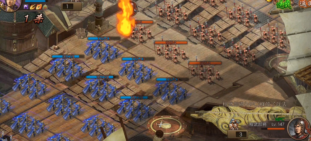 你的典韦穿驱虎套冲上去,对着第三个副将剩下的兵和程武的第一排直接放战法。然后操控典韦一路砍过去,理想状态是典韦打到程武面前时还剩两排兵。这时候程武会放战法,你的典韦肯定扛不住会被送下场,但没关系,他的任务就是把程武第一排封住,确保程武第一次战法伤不到最后出场的姜维。你的姜维穿烛龙套,带着周泰副将上场。对着程武直接放战法,程武也会放战法反击。只要前面步骤都做到位了,这时你的姜维应该还剩三排满血兵,对上已经被打残的程武四排兵,优势就很明显了,稳稳打过去就能通关。