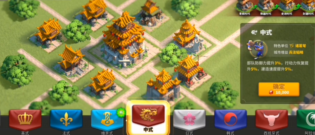打开背包找到卡片戳使用,页面会自动跳转到文明风格界面。这时候就能看到罗马、阿拉伯、中国这些漂漂亮亮的缩略图,滑动挑个最顺眼的。选好后别光顾着看预览图,得点右下角切换按钮,系统会弹出新风格的属性加成说明。比如骑兵玩家可能偏爱阿拉伯的突袭强化,种田党或许更中意法兰西的资源增益,咱们根据自己发展路线选就行。最后点确定按钮前再核对下条件,顺利的话城市立马焕然一新。