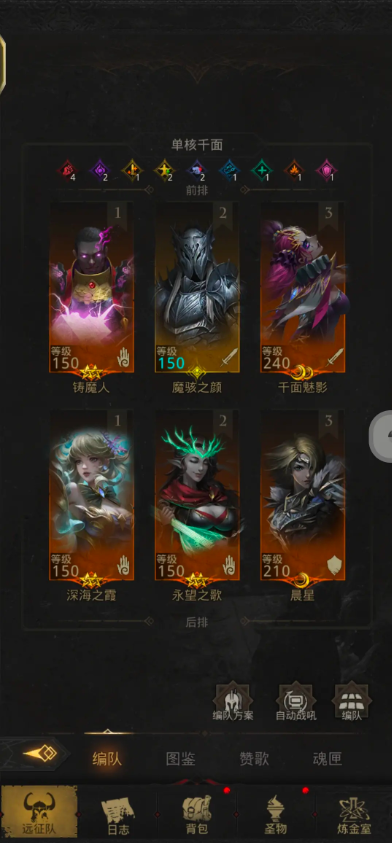 技能设置是关键:三个奶妈统一开群体治疗,晨光和永望放在同一列开启自动战吼;两个护卫的被动技能调整为效果消失后施放,群体致盲技能设为至少2个敌人时触发;主C只开群攻技能(源书使建议用2技能)挂机输出即可。站位方面,护卫和奶妈放前排吸收伤害,主C和辅助放后排安全输出。记得频繁暂停观察战况,尤其注意眩晕控制链是否衔接,必要时手动补战吼。