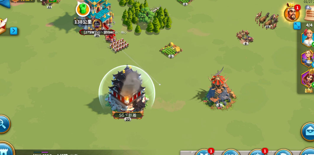 集结精锐部队发起突袭,在敌方激活新护盾前完成关键建筑破坏或领地占领。行军路线需避开敌方侦察密集区,利用骑兵提升机动性缩短接敌时间;同步使用投石车、破城锥等器械针对城墙弱点进行高效破坏。作战中避免追击残兵,集中火力摧毁哨塔、关卡等战略节点以锁定胜局。