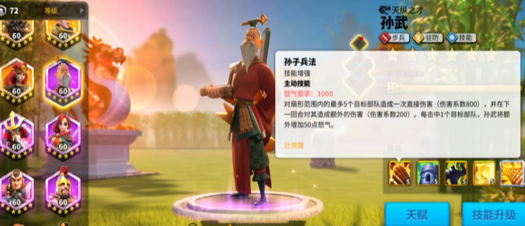 给武将穿对装备很重要——攻击型将领先选加输出的武器,防御型将更依赖生命和防御加成的护甲。别小看紫色装备,前期攒材料做一套基础装过渡很实用,后期再慢慢追求金色极品。天赋加点要跟着武将定位走:野战将领多点群攻和移速,守城将领优先防御和生命加成。注意天赋点有限,别乱点冷门分支,比如步兵将的天赋树里步兵生命和技能减伤这类硬生存属性通常比纯输出更实用。