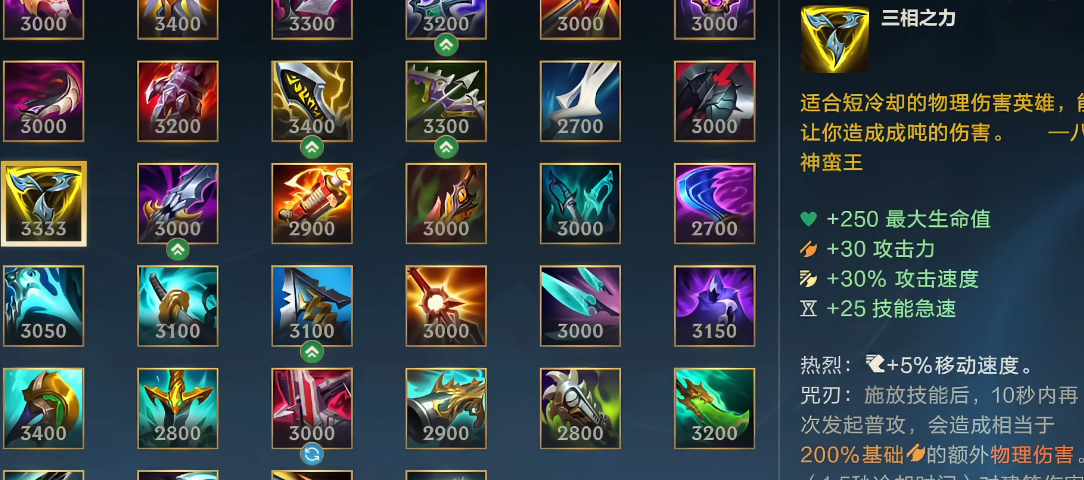 蔚通常选择三相之力强化爆发,搭配血手和亡者板甲平衡生存,走半肉战士流以兼顾切入与承伤。若队伍需补充输出,可转型刺客装追求瞬杀能力。皇子则更具策略弹性:逆风时可选择日炎斗篷、兰顿之兆组成纯肉装充当团队前排;顺风时可搭配黑切、幕刃提升伤害,利用基础技能高AD加成打出压制效果。两者符文均以征服者为主流,但蔚可带电刑强化前期节奏,皇子则倾向骸骨镀层增强开团存活率。
