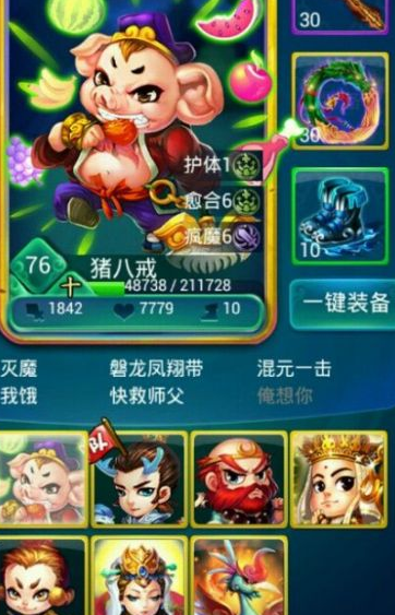 核心思路就是利用魔族特有的疯魔和元形机制打配合,前期靠疯魔快速叠攻击力,元形护法则扛住伤害争取发育时间,这套组合在推图和副本里特别吃得开。猪八戒是平民神卡,境界升满自带疯魔,配合灵感大王这种带元形的护法,能让你前期推图轻松不少,刷2-12关卡就能拿到灵感,门槛真心不高。记得把带疯魔的卡放后排安全位置,元形卡放前排中间保护脆皮输出,站位对了就赢一半。