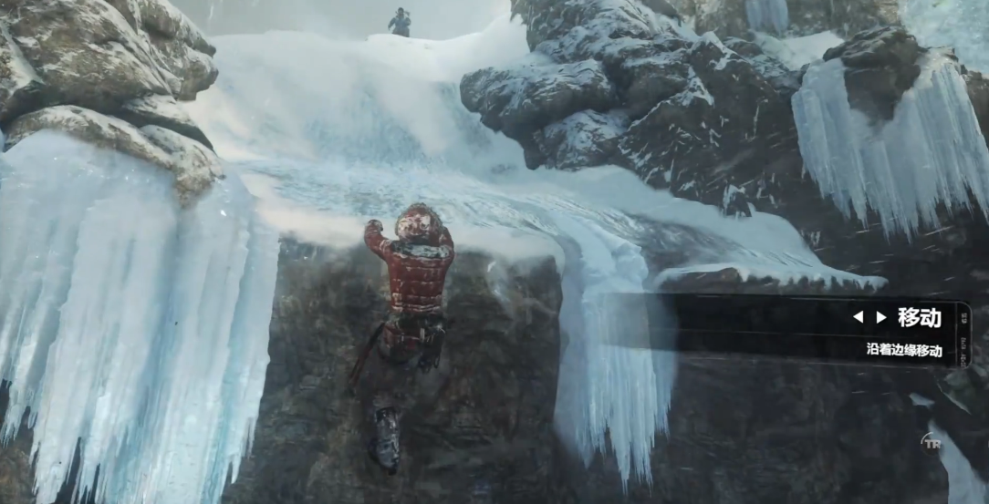 开始有一段非常紧张刺激的雪崩逃生环节,这是一个典型的快速反应和跑酷关卡。当劳拉和同伴爬上冰墙顶部后,远处的雪崩就会发生,这时候你要立刻开始向前狂奔,整个流程几乎没有给你犹豫的时间,考验的就是你对基础操作的熟练度和反应速度。