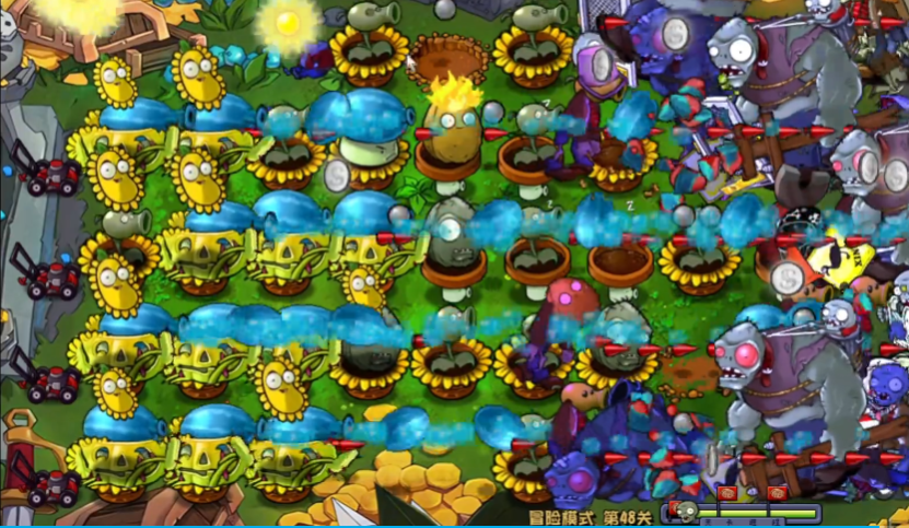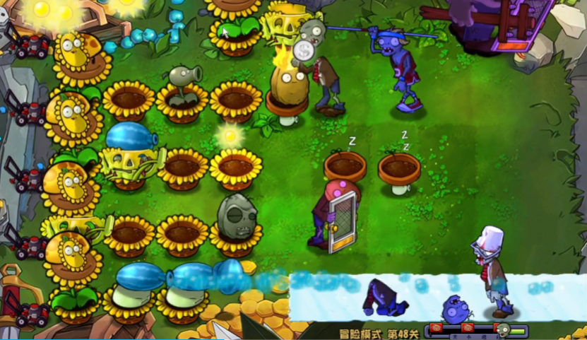 科学布局与持续尝试同样重要,不同的植物应放在合适的位置以最大化其作用,例如长距离攻击的植物如寒冰仙人掌可以放在靠后的位置,以确保其安全并发挥最大威力,而坚果类防御植物则应该前置,果冻蘑菇放在最前线可以吸引并消灭跳跃类僵尸,你需要不断观察僵尸的进攻路线和类型,及时补充被消耗的植物,比如在中间补充玉米卷香蒲和寒冰仙人掌,并在右侧种植地刺和坚果,形成一道稳固的防线,当出现难以抵挡的僵尸时,也不要慌张,合理利用好每一个植物的冷却时间。