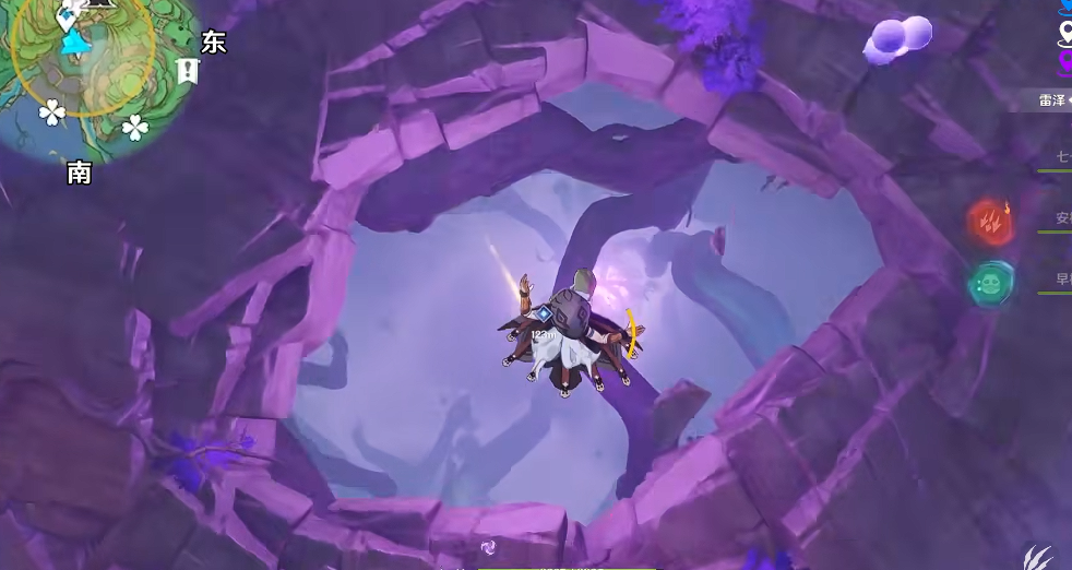 进入影向山的最底部。这里可要千万小心,下面的区域雷元素浓度高得吓人,会一直让你掉血,所以进去之前记得召唤一个雷种子带在身上,它能帮你抵挡住这个持续的伤害。落到最底下,你就会看到一个巨大的紫色瘤子挂在空中,这就是最终要对付的瘴晦瘤了。打这个家伙可不能硬来,它有个锁血的机制,需要分三个阶段来击败,每个阶段都得先完成一个机关解谜才能让它掉下来挨揍。整个战斗区域是圆形的,周围有一圈雷灯台(也叫神龛),解谜的关键就是调整这些灯台上勾玉的序列,让它们连线的图案和场地中央出现的图形一模一样。
