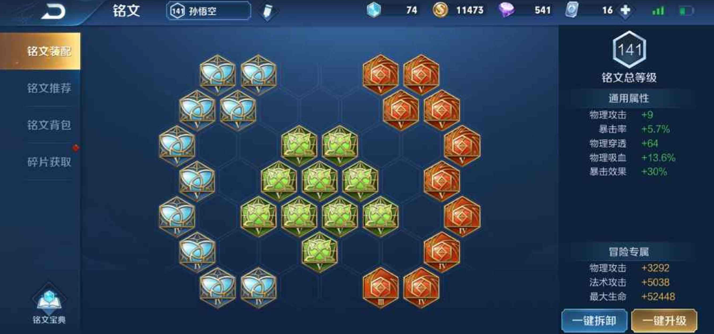 咱们先来说说铭文怎么配,这可是拉开差距的第一步。目前最主流、最受认可的一套就是十个无双、十个鹰眼和十个夺萃。为啥这么配呢?红色无双能给你加百分之七的暴击率和高达百分之三十六的暴击效果,这暴击效果可太关键了,正好把猴子初始暴击伤害低的缺点给补上了,敲出来的数字会好看很多。绿色鹰眼没啥好说的,物理攻击和物理穿透是打伤害的基础,带了它前期打人就不刮痧。蓝色夺萃提供百分之十六的物理吸血,这个非常实用,让你在野区刷野或者对线的时候基本不用回家,续航能力拉满,能一直赖在线上或者野区发育。 如果你觉得移速有点慢,想支援跑图更快一点,也可以把一部分夺萃换成狩猎,比如用六个夺萃加四个狩猎,这样有点吸血也有点移速和攻速,自己可以按手感调整。 红色铭文就别折腾了,无双就是最适合猴子的。
