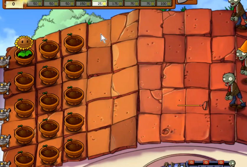 第5-4关也就是屋顶关卡的核心思路其实很明确,就是得在摇摇晃晃的屋顶上,一边稳住阵脚建立经济,一边对付那些来势汹汹的僵尸。开局手一定要快,赶紧放下花盆,种上生产阳光的植物,阳光就是咱们的命根子,没有后续的资源支撑,防线很快就会崩掉。前期压力不大的时候也别闲着,继续扩大你的阳光生产线,多一株产光植物,后面打起来就从容一分。