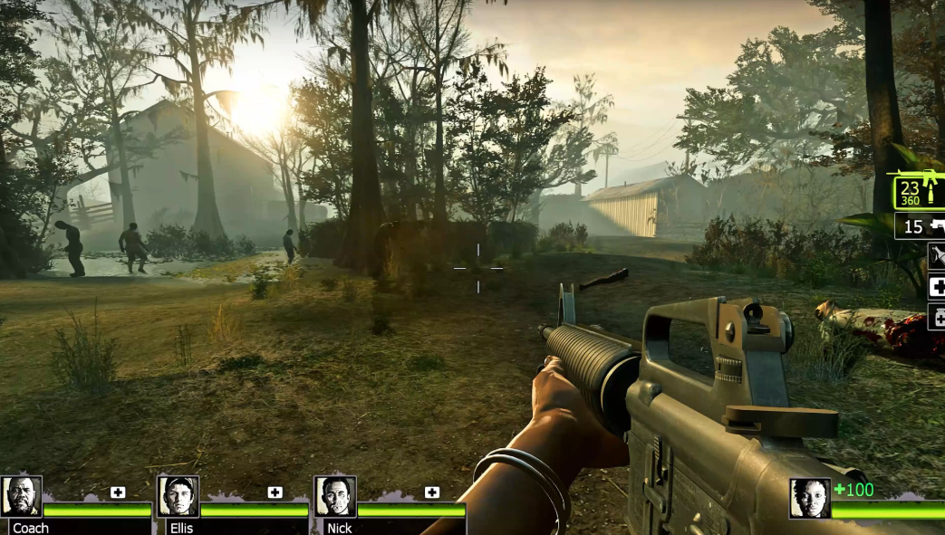 战役模式是整个游戏最核心的玩法,你得和三个队友一起,从地图的起点闯过一系列充满丧尸的关卡,最终抵达那个让人安心的安全屋才算成功。这就是一个四人合作的闯关之旅,全程都需要紧密配合,一个人莽干是很难走远的。路上你会捡到各种各样的武器和补给,比如手枪、霰弹枪,还有能让你在尸群里开路的近战武器,像是消防斧或撬棍,这些家伙事儿在近距离对付普通丧尸时特别好使,能帮你省下不少宝贵的子弹。你的目标不是杀光所有看到的丧尸,而是和伙伴们一起活着到达终点。