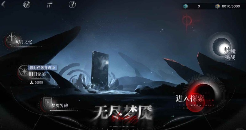 无尽梦魇是现存最具挑战性的玩法之一,它本质上是一种融入肉鸽要素的爬塔挑战。在这个模式里,你需要组建一支禁闭者小队,深入不断变化且危机四伏的梦魇空间进行探索。玩法的基础框架是在一张由各种事件节点构成的格子地图上前进,节点类型包括需要战斗的遭遇战、可以强化队伍的铭刻之地、用于恢复或获取资源的培育点等。整个探索过程没有回头路,你的核心资源是神智值,它不仅会在战斗中因敌人逃脱而损耗,也会你的移动与选择被消耗;一旦神智值归零或小队成员全部因积累三层创痕而离队,本次探索便会宣告失败。管理的核心在于精打细算地规划路径,在强化自身与保存实力之间找到平衡,最终目标是抵达最深处的出口,完成探索。