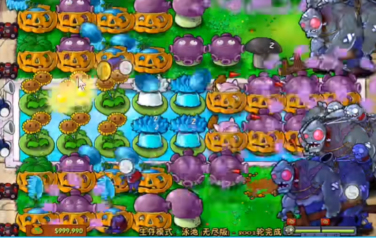 关键植物选择包括冰西瓜用于全屏减速效果,忧郁菇提供范围攻击以清理密集僵尸,南瓜头保护重要植物免受啃食,香蒲专门应对气球僵尸的空中威胁。这些植物的放置位置需优化,例如将忧郁菇覆盖后排水路以拦截矿工和小鬼僵尸,陆地前排布置地刺王防御冰车和巨人僵尸。合理的植物搭配能最大化输出和控制,减少防御漏洞。