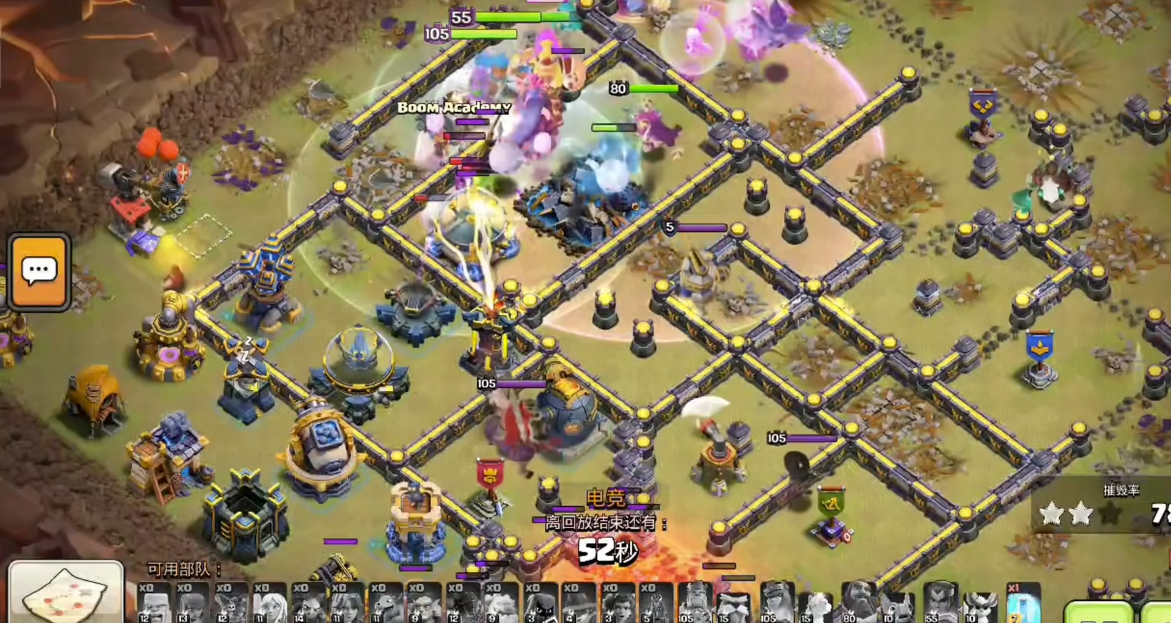 破解蛮王的具体战术执行,需要精细的兵种协同与技能时机把握。一种常见思路是利用其近战特性进行清边或定点清扫,即使用我方部队或英雄提前清理特定区域的建筑,引导或迫使蛮王偏离其预设的进攻路径,从而使其与大部队脱节。在部队搭配上,可以配置具有高生存能力的单位如巨人或石头人作为前排吸引蛮王火力,同时安排高伤害的远程单位如法师进行集中输出。法术的运用至关重要,例如在蛮王开启大招时,可以使用冰冻法术暂时限制其行动,或利用骷髅药水召唤的小单位吸引其攻击,从而保护我方主力部队。