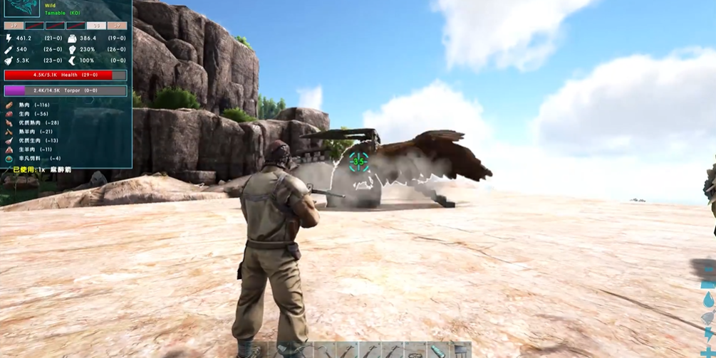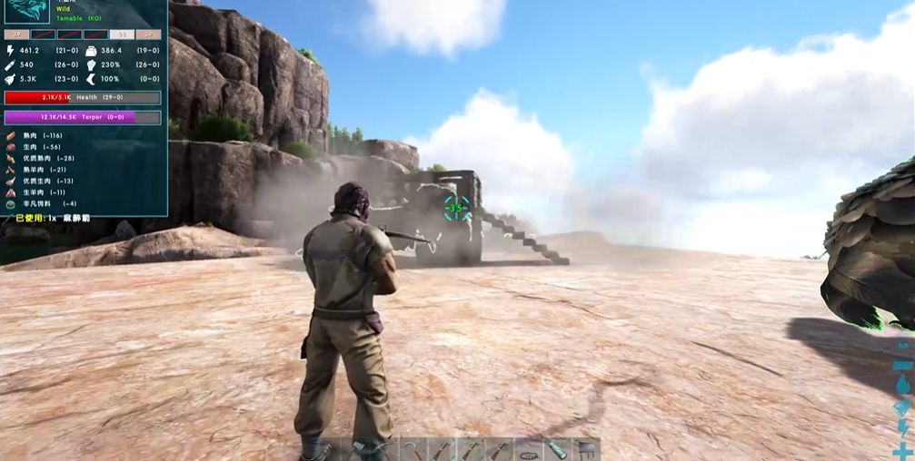 接下来需要找到狮鹫并安全地控制住它。狮鹫通常栖息在高山、悬崖峭壁等高海拔区域,例如地图上的远峰山脉或坐标为(45,31)的绿色方舟附近。由于狮鹫警觉性高且会主动攻击,直接靠近非常危险,最有效的方法是建造一个困龙房。你可以用柱子或恐龙门框架建造一个三面围挡、三层高的结构,只留一个出口并安装恐龙门。然后骑乘一头高耐力的翼龙,将一只落单的狮鹫引诱过来,保持直线飞行带入困龙房后迅速关门,即可将其安全困住。