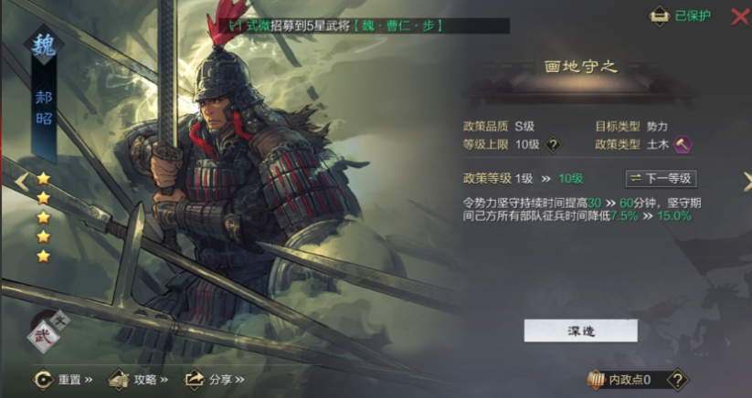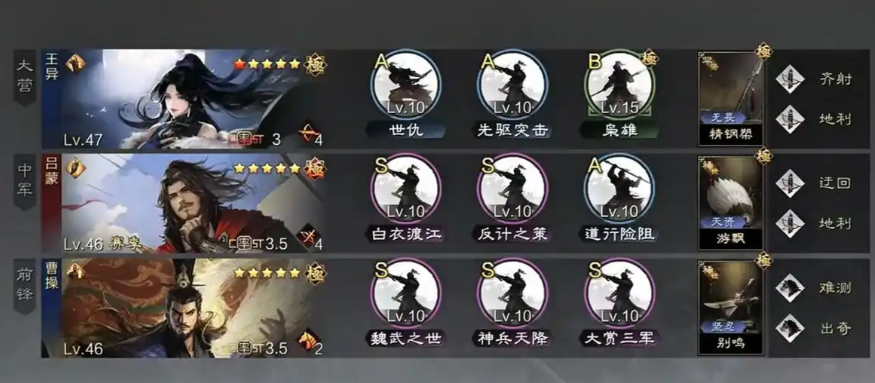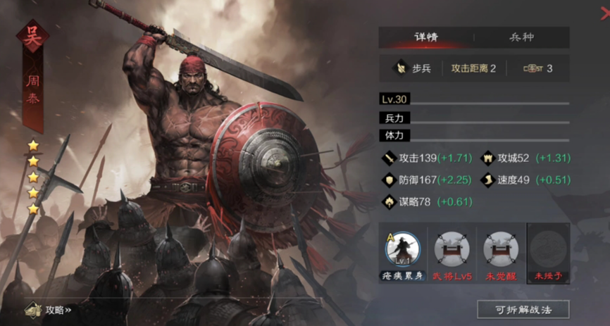 武将的自身属性成长与战法携带选择也深刻地影响了他们的应用场景。周泰的防御成长极高,攻击成长尚可,但谋略成长较低,这使得他后期叠加的谋略属性虽然数值可观,但基础值影响了某些谋略战法的初始收益。他的战法选择较为灵活,既可以携带回马配合援护进行反击,也可以在后几回合携带掎角之势、道行险阻等依赖高攻击和高谋略的双属性输出战法,甚至可以选择一些辅助性战法。需给他携带过多的规避类战法可能会减慢其属性叠加的速度。郝昭的防御成长同样出色,谋略成长虽不突出但其战法提供属性加成,攻击成长一般。由于不动如山的免疫效果,他可以毫无顾忌地携带任何主动战法,尤其是那些可能因控制而打断的战法,例如全军突击既能解控又能治疗,与他的特性完美契合。他的输出更多依赖于所携带的战法以及队伍的整体增幅。在战法资源的分配上,若你拥有顶级的双属性输出战法,周泰能将其效益最大化;若你拥有重要的主动控制或解控战法,郝昭能确保其百分百的发动机会。