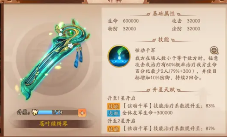 除了丈八蛇矛和墨羽扇这两件首选神兵,苍叶绿绮琴也是贾诩的可选备选方案之一。这把神兵通常推荐给治疗武将使用,但它提供的防御加成和免伤效果能提升贾诩的生存能力。如果你的贾诩在战斗中容易成为敌方集火目标,携带苍叶绿绮琴可以让他站得更久,从而持续提供毒伤和团队增益。在资源有限或金色神兵已分配给其他主力武将的情况下,墨羽扇是贾诩的最佳替代方案,而考虑生存时则可评估苍叶绿绮琴的价值。