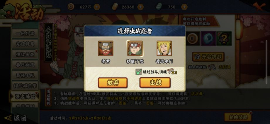 进入竞技场前需完成秘卷装备流程,在主界面打开秘卷界面,选定对应忍者后绑定适配秘卷,单名忍者仅可携带一个秘卷,需根据忍者机制精准匹配,近战突进忍者搭配霸体可免疫控制持续输出,避免连招被打断,远程消耗忍者携带风杀阵可封锁走位、吸附敌人并稳定对空,限制空中忍者的机动优势,冰遁·冻雪凭借稳定冰冻控制,能打断敌方突进与连招,为自身创造输出窗口,适合缺乏强起手的忍者补足控制能力。