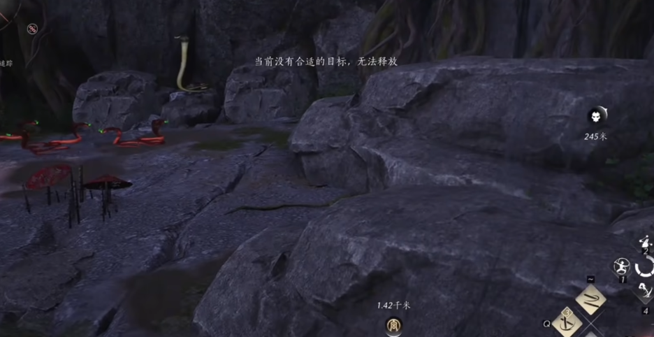 幻歌百目莲主要分布在清河区域的隐秘地带,外观呈现淡蓝色并伴有紫色雾气,周围会环绕1至3群幻蝶,是采集的关键阻碍。寻找时可开启听风辨位功能,小地图上会显示飞虫标记,快速定位花朵位置。采集前需切换弓箭作为远程武器,瞄准并逐一击落所有幻蝶群,待雾气消散后再靠近交互,即可成功获取,采集后可提升眼力属性,助力后续探索与寻宝。