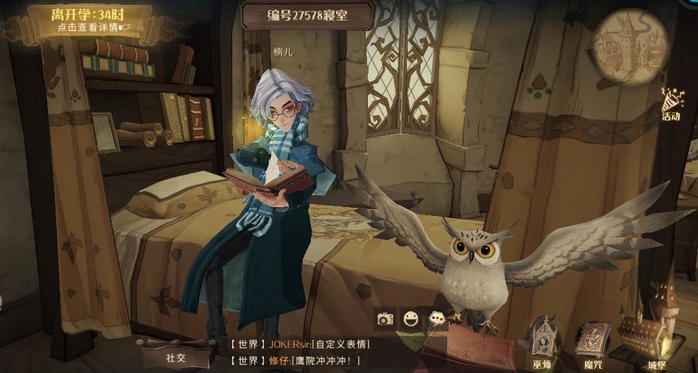 哈利波特魔法觉醒的作业入口位于游戏主界面的右侧功能栏中,图标为带有书本样式的作业标识,点击即可进入作业系统界面。